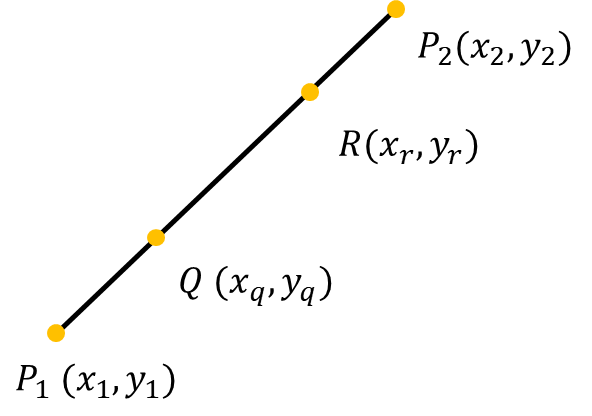 선을 나누면 아래의 식으로 Q점과 R점을 나타낼 수 있다.
